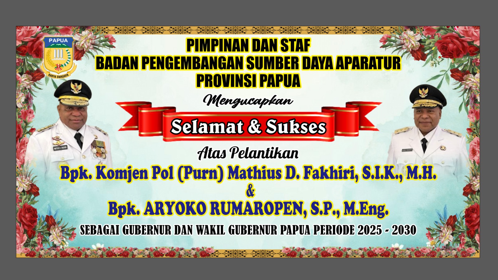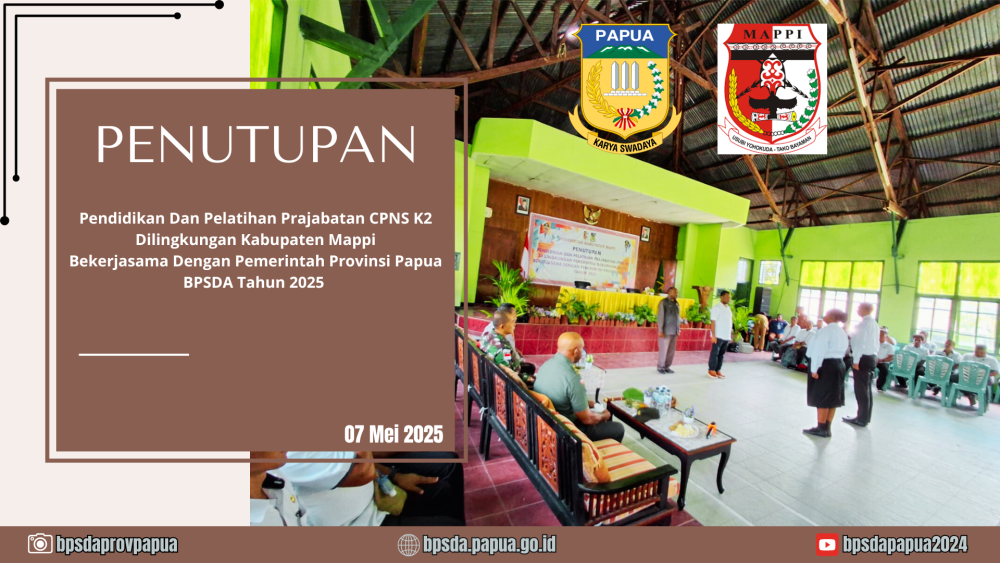 Selamat datang di website Badan Pengembangan Sumber Daya Manusia Provinsi Papua. Sebagai garda terdepan dalam pengembangan aparatur, kami berkomitmen untuk membangun SDM yang profesional, berintegritas, dan berorientasi pelayanan dengan mengedepankan core value ASN BerAKHLAK (Berorientasi Pelayanan, Akuntabel, Kompeten, Harmonis, Loyal, Adaptif, dan Kolaborati). Semoga website ini menjadi sumber informasi yang bermanfaat bagi seluruh ASN dan masyarakat.